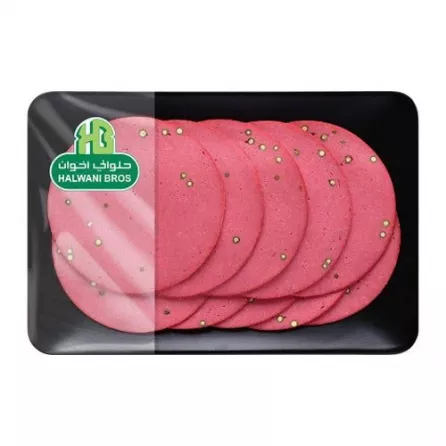 Enjoy the bold, peppery kick of Halwani Bros Luncheon Slices with Black Pepper. These carefully crafted deli slices feature tender, high-quality meat with a distinctive black pepper seasoning that adds a delicious spice to every bite.