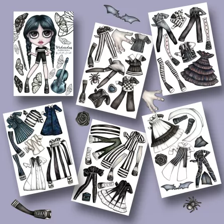The Wednesday paper doll set is a fun and creative way for girls to express their imagination.The set includes 16 dress ups and 26 accessory ensembles that allow girls to mix and match to create their own unique looks.The set is perfect for taking with you on travel or for giving as a gift.The set is made for any little girl who loves to play dress up and pretend.