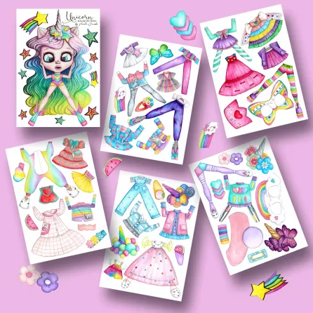 The Unicorn paper doll set is a fun and creative way for girls to express their imagination.The set includes 25 dress ups and 21 accessory ensembles that allow girls to mix and match to create their own unique looks.The set is perfect for taking with you on travel or for giving as a gift.The set is made for any little girl who loves to play dress up and pretend.