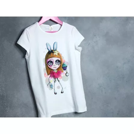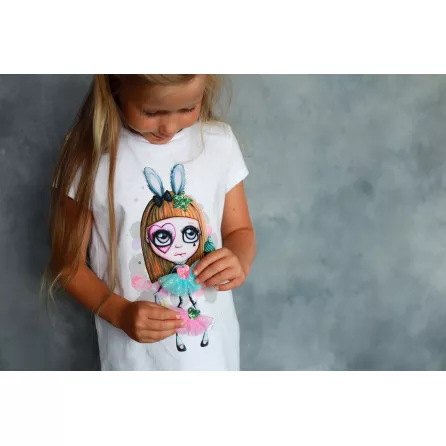 Inspired by the characters from the story "Alice in Wonderland".Interactive and playful, with a changeable dress and a star on hoop and loop tape.Handmade and sewed in Latvia with high quality softest material: 96% organic cotton and 4% elastane.Available for girls aged 2-12 with short and long sleeves.