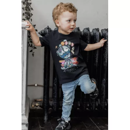 This one-of-a-kind T-shirt features an illustration of Batbear, a lovable teddy bear superhero with a broken toy charm.Handmade and sewed in Latvia with high quality softest material: 96% organic cotton and 4% elastane. Available for boys and girls aged 2-12 in black and white. Each t-shirt is part of a limited edition, adding an exclusive touch to your wardrobe.