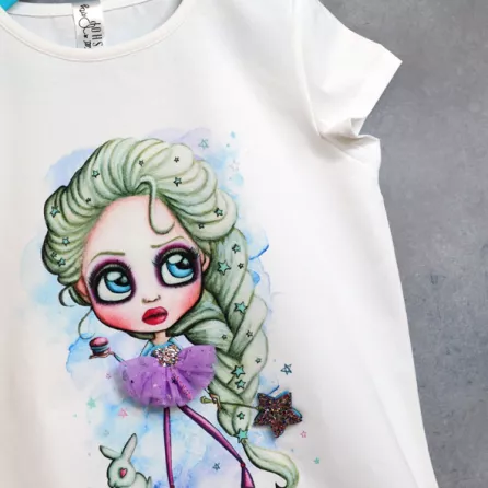 • T-shirt design inspired by Princess Elsa, hand-drawn in doll style