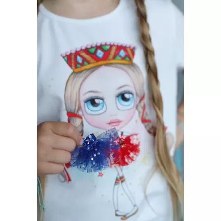 Inspired by Latvian folk girls hand-drawn in doll style.Interactive and playful, with a changeable dress on hoop and loop tape.Handmade and sewed in Latvia with high quality softest material: 96% organic cotton and 4% elastane. Available for girls aged 2-12 with short and long sleeves.