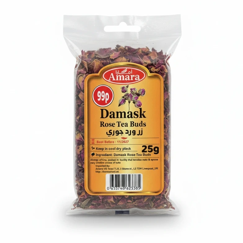 Enjoy the delicate and floral aroma of Amara Damask Rose Tea Buds, a premium natural tea made from carefully dried Damask rose buds. Perfect for brewing a soothing cup at any time of day.