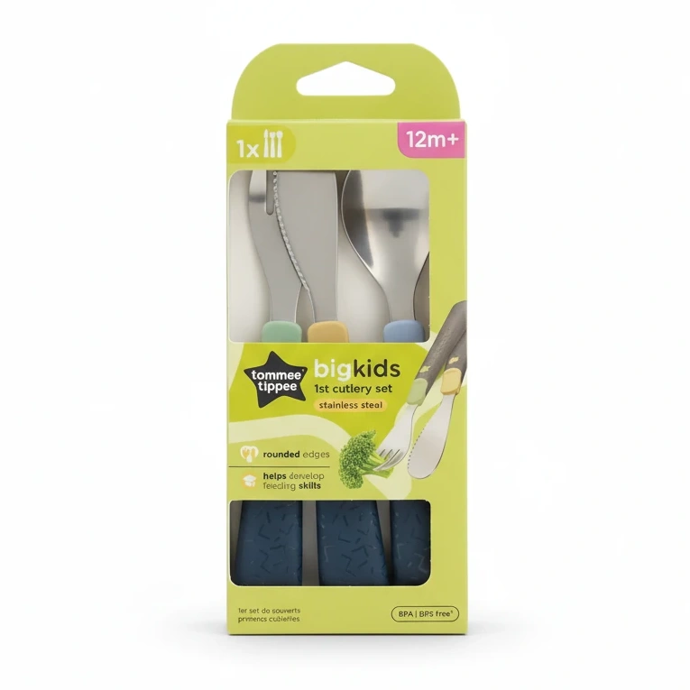 Designed for toddlers aged 12 months and older, this Tommee Tippee bigkids first cutlery set promotes independent eating with a friendly and safe design. Crafted from durable stainless steel, each piece features rounded edges to ensure little hands can use them safely without risk of injury.