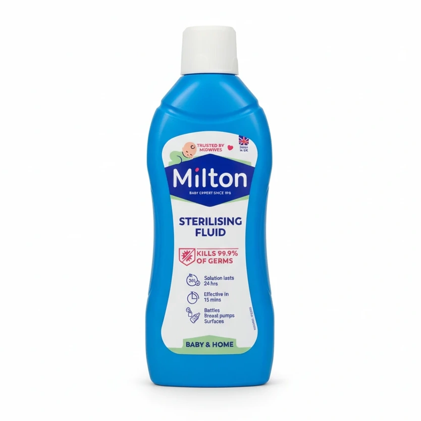 Milton Sterilising Fluid is a trusted solution for keeping baby feeding accessories and household surfaces clean and germ-free. Designed with parents in mind, this fluid kills 99.9% of germs effectively and safely.