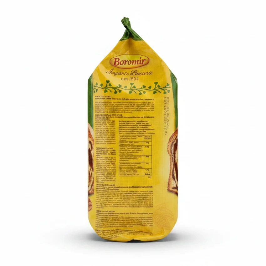 This traditional Boromir Cozonac offers a delightfully rich blend with its walnut and cocoa filling, perfect for those who appreciate authentic Romanian sweet bread. Made with slow-leavened dough using free-range eggs, it promises a moist, tender texture that melts in your mouth.