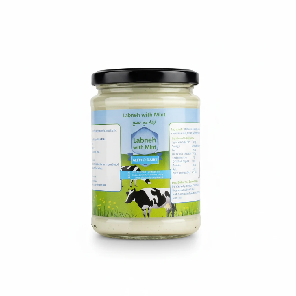 Enjoy the fresh and creamy delight of Halalo Labneh with Mint, made from 100% natural and full-fat pasteurised fresh cow's milk. This labneh is carefully crafted with a traditional starter culture and a touch of refreshing mint, infused with extra virgin olive oil to enhance its rich texture and flavour.