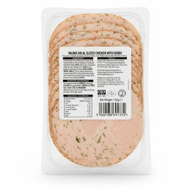 Enjoy the convenience of Najma's Halal Chicken Slices, perfectly seasoned with herbs for a flavourful experience. These ready-to-eat slices are a great source of protein, making them a versatile choice for quick meals or delicious sandwiches.