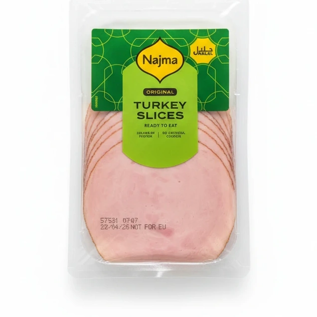 Enjoy the convenience of Najma's Halal Turkey Slices, perfectly cooked and ready to eat for a quick protein boost anytime. These slices are crafted from high-quality turkey meat, ensuring a tender and flavoursome experience.