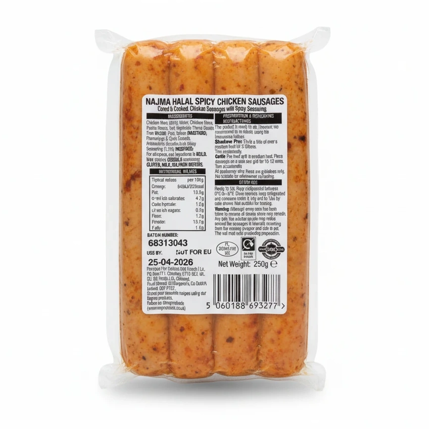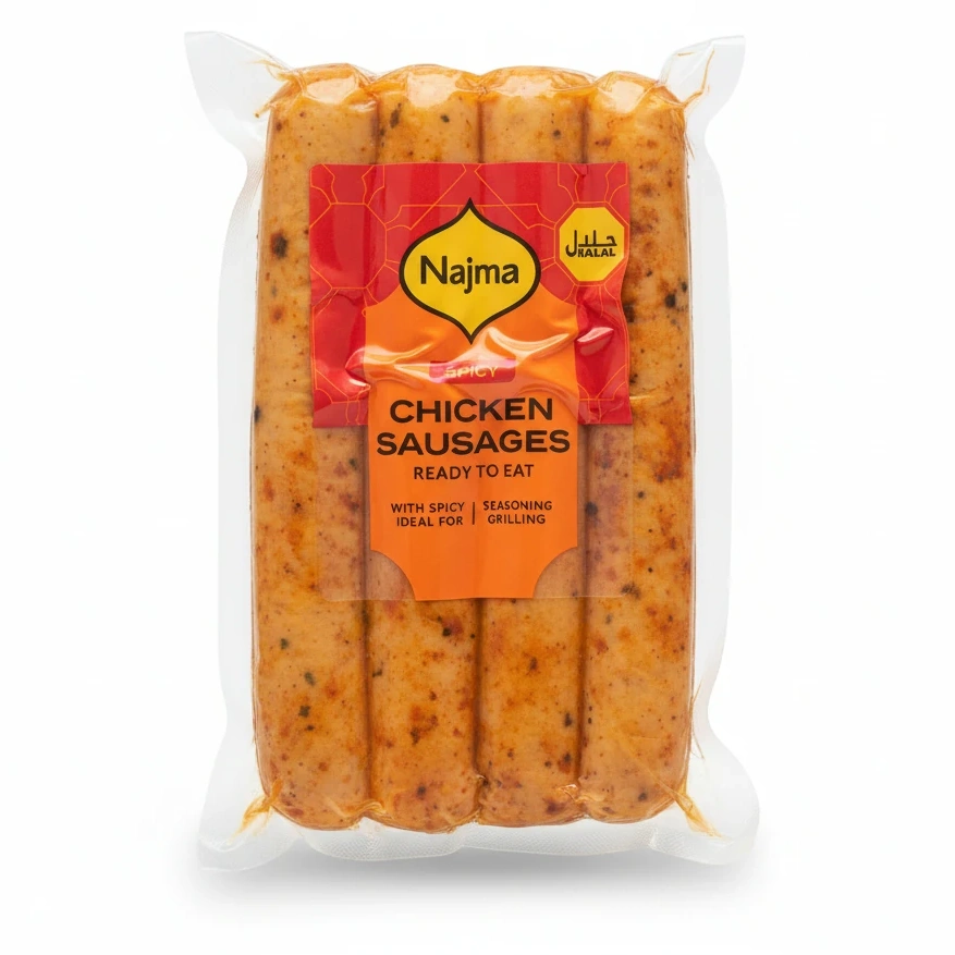 These Najma Spicy Chicken Sausages pack a punch with their bold and zesty seasoning. Ready to eat and cured, they perfectly blend tender chicken meat with a touch of spice that’s ideal for those who enjoy a little heat in their meals.