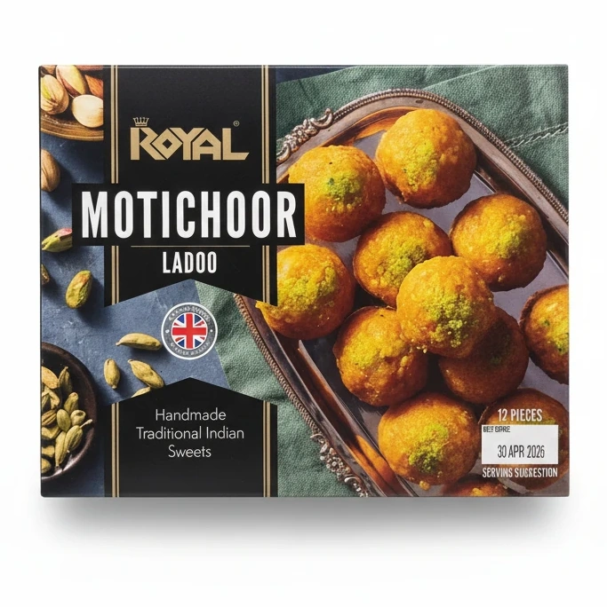 This box includes 12 pieces of beautifully crafted ladoos, topped with a hint of crushed pistachios for added texture and flavour. Whether enjoyed on their own or as part of a festive celebration, these sweets bring a burst of authentic Indian flavours to your palate.