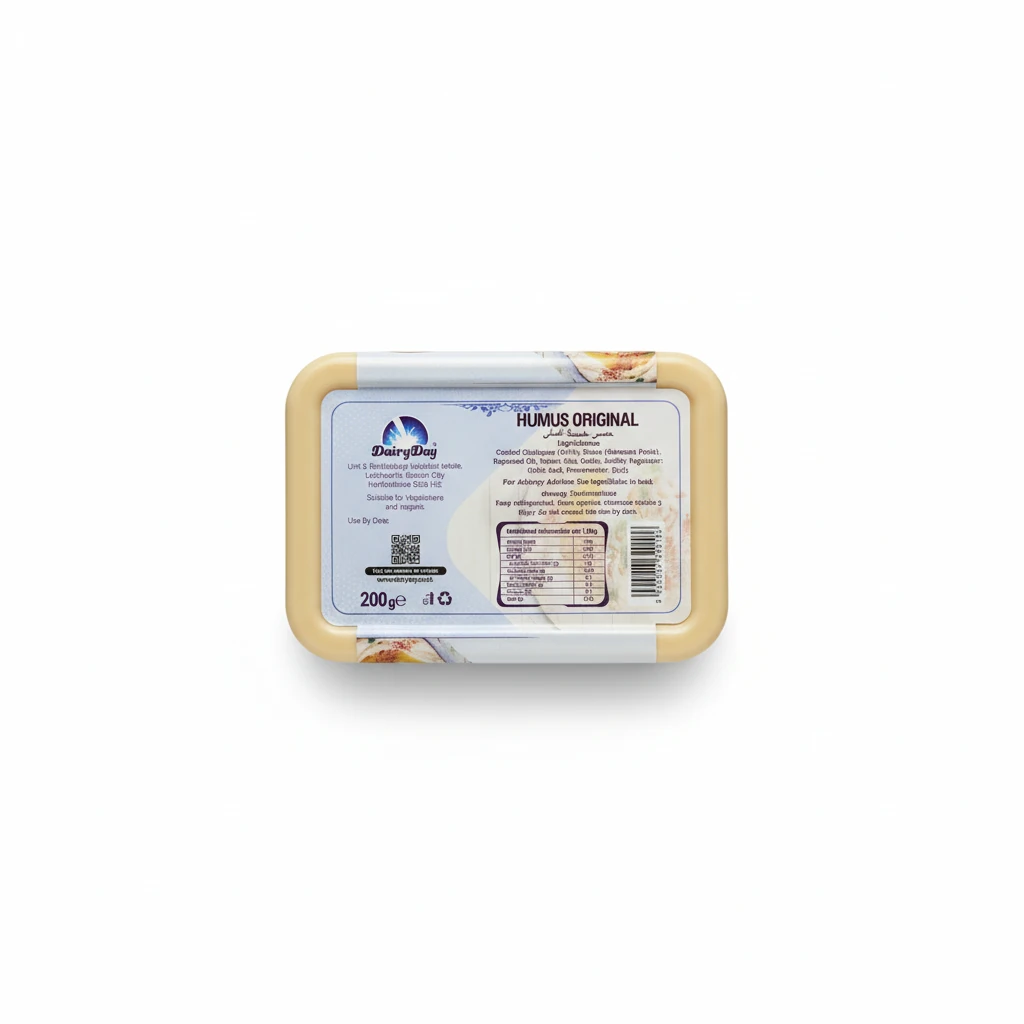 Enjoy the rich, creamy taste of Halalo's DairyDay Original Hummus, crafted to bring the authentic Middle Eastern flavour right to your table. Made with 61% cooked chickpeas, blended perfectly with smooth tahini and a hint of garlic, it’s the ideal healthy snack or tasty accomplice for your meals.