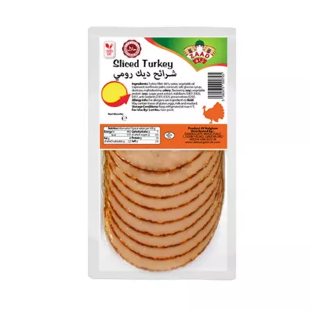 Enjoy the delicious taste of Zaad Halal Sliced Turkey, carefully prepared to meet high-quality standards and fully certified halal. Perfectly sliced for convenience, it's an excellent addition to sandwiches, wraps, salads, or a quick snack any time of the day.