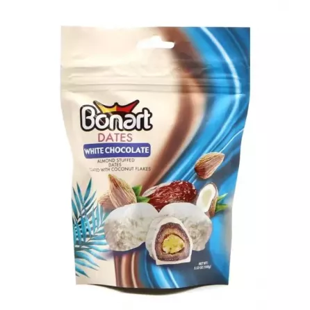Bonart White Chocolate Almond Stuffed Dates With Coconut Flakes