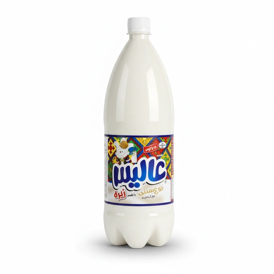 Enjoy the refreshing and unique taste of Alis Doogh Autochthon, a lightly carbonated yogurt drink infused with the warm, aromatic flavour of cumin. This 1.5-litre bottle offers a convenient way to savour this traditional beverage, perfect for accompanying meals or as a revitalising refreshment.