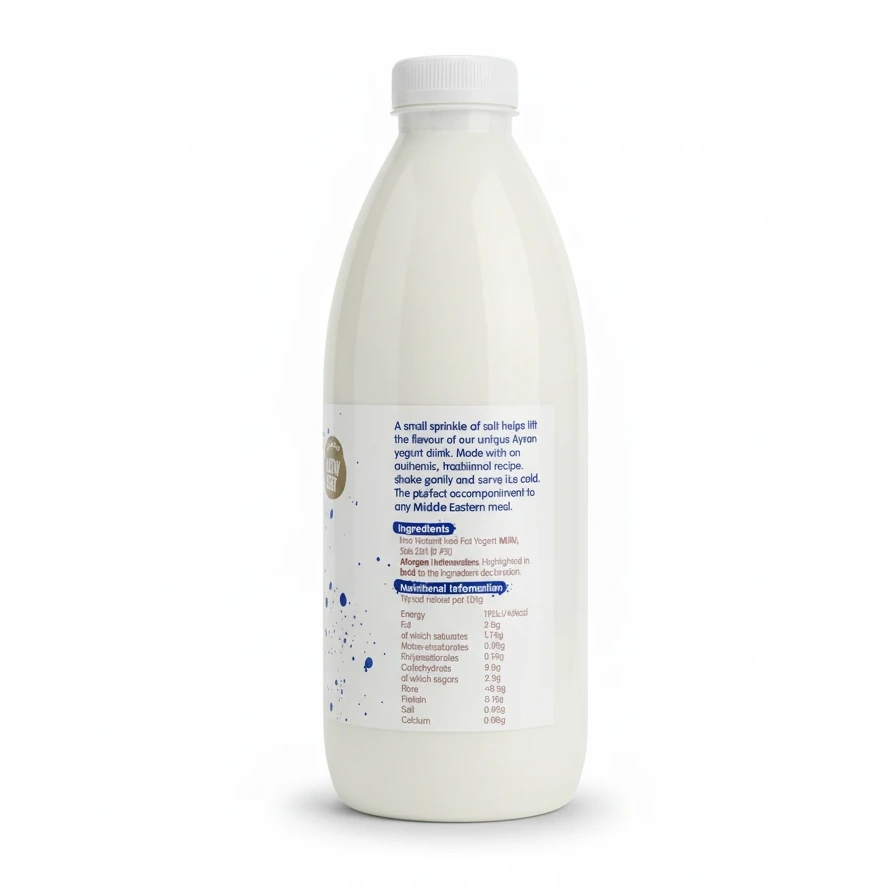 Discover the refreshing taste of Pakeeza Ayran Lassi, a traditional Middle Eastern yogurt drink made from live natural low-fat yogurt gently seasoned with a hint of sea salt (0.4%) for a unique and delightful flavour.