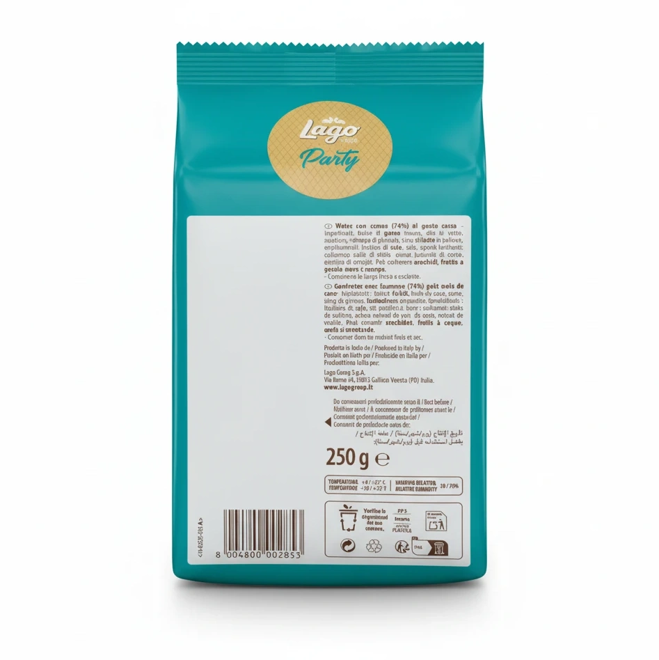 Indulge in a taste of Italy's best with each bite of Lago Party Wafer featuring the tropical twist of coconut. Ideal for lovers of sweet, crunchy snacks looking for a high-quality and enjoyable treat.