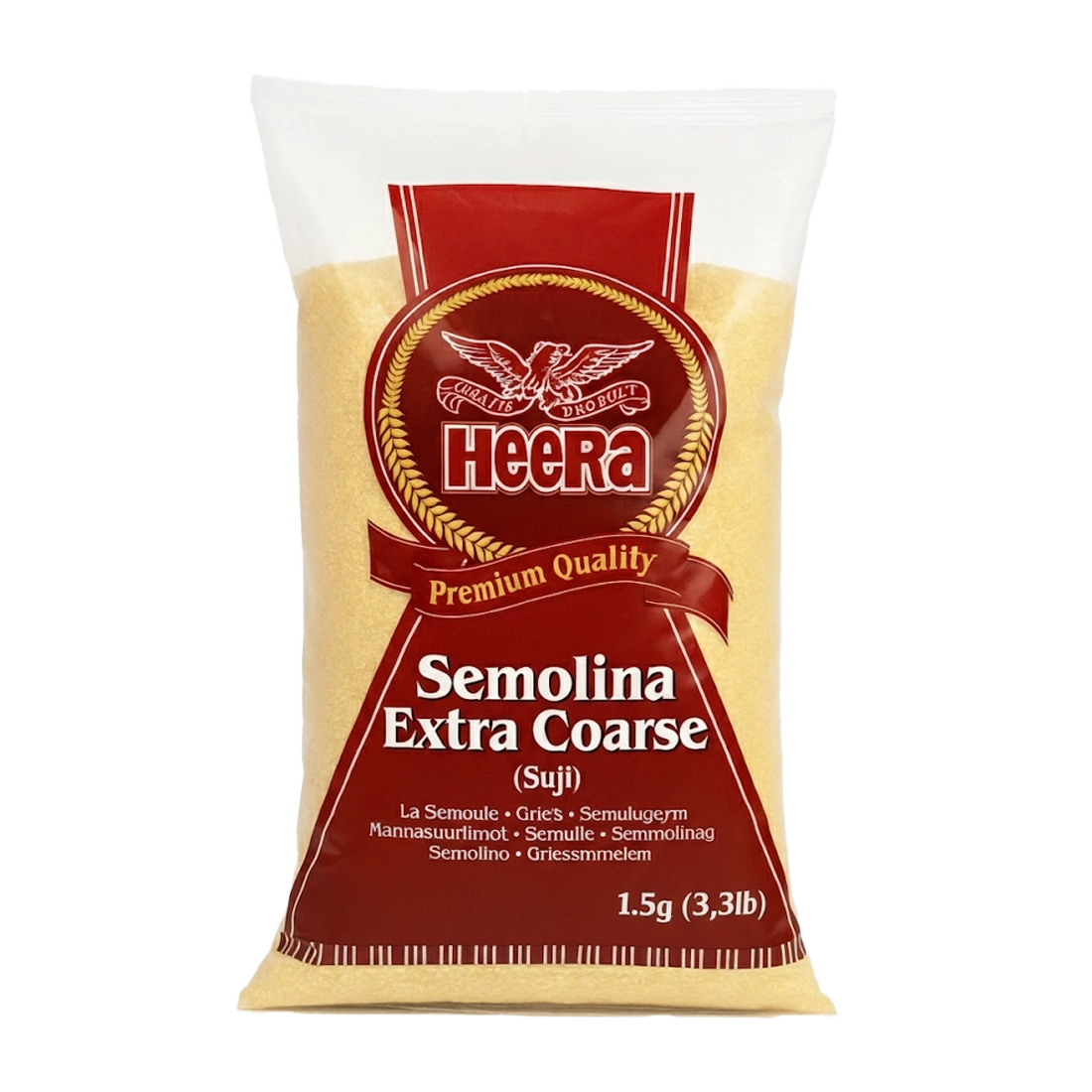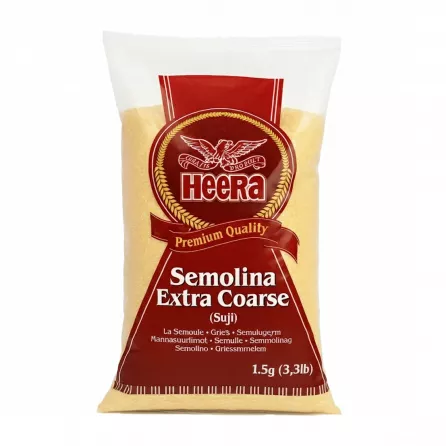 Heera Semolina Extra Coarse 1.5kg is a high-quality durum wheat product, popular in African, Middle Eastern, Asian, and European cooking. This extra coarse semolina is ideal for making traditional dishes such as Semolina Fufu, Upma, Halwa (Suji), Gnocchi, Couscous-style dishes, and Semolina Porridge.