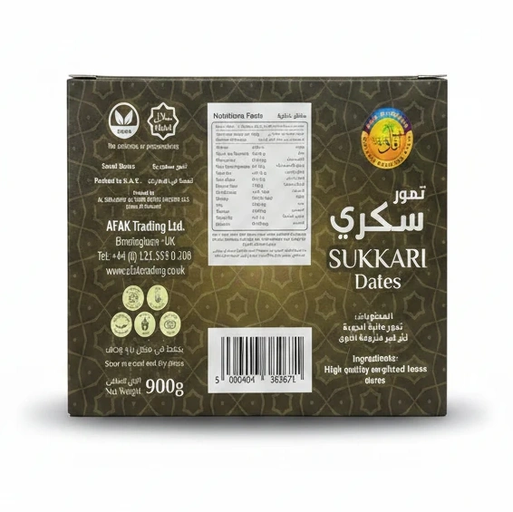 Packaged by Afak Trading Ltd. in the UK with care, these dates promise fresh taste and nutritional benefits, stored best in a cool, dry place for optimal freshness.