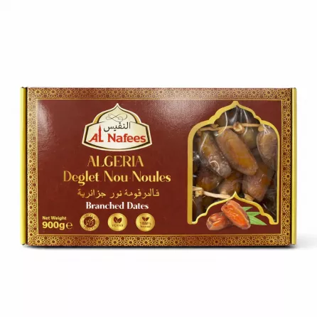 - Premium Algerian Deglet Nour branched dates with a naturally sweet flavour and soft bite