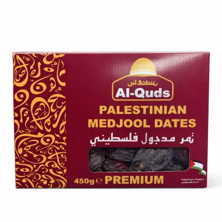 - Premium Palestinian Medjool dates with a large size, soft texture, and rich natural sweetness