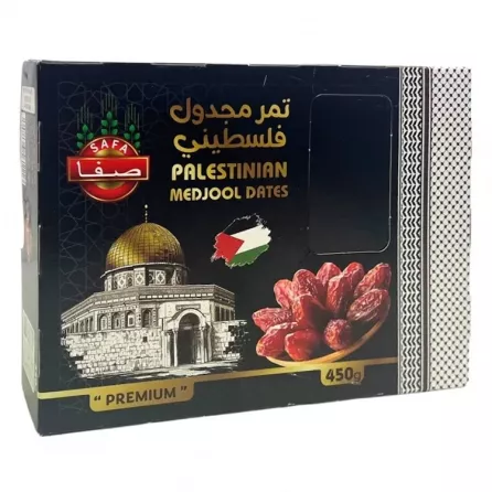 - Safa Medjool Dates are a premium variety of Palestinian dates, renowned for their large size, rich flavour, and soft, succulent texture. Often called the "King of Dates," this specific brand highlights its Palestinian origin and "premium" quality.