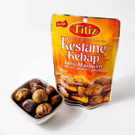 Enjoy the rich, warm taste of Titiz Kestane Kebap, expertly roasted and peeled chestnuts that offer a delightful snack for any time of day. These chestnuts come ready to eat, making them a convenient and delicious treat straight from the pack.