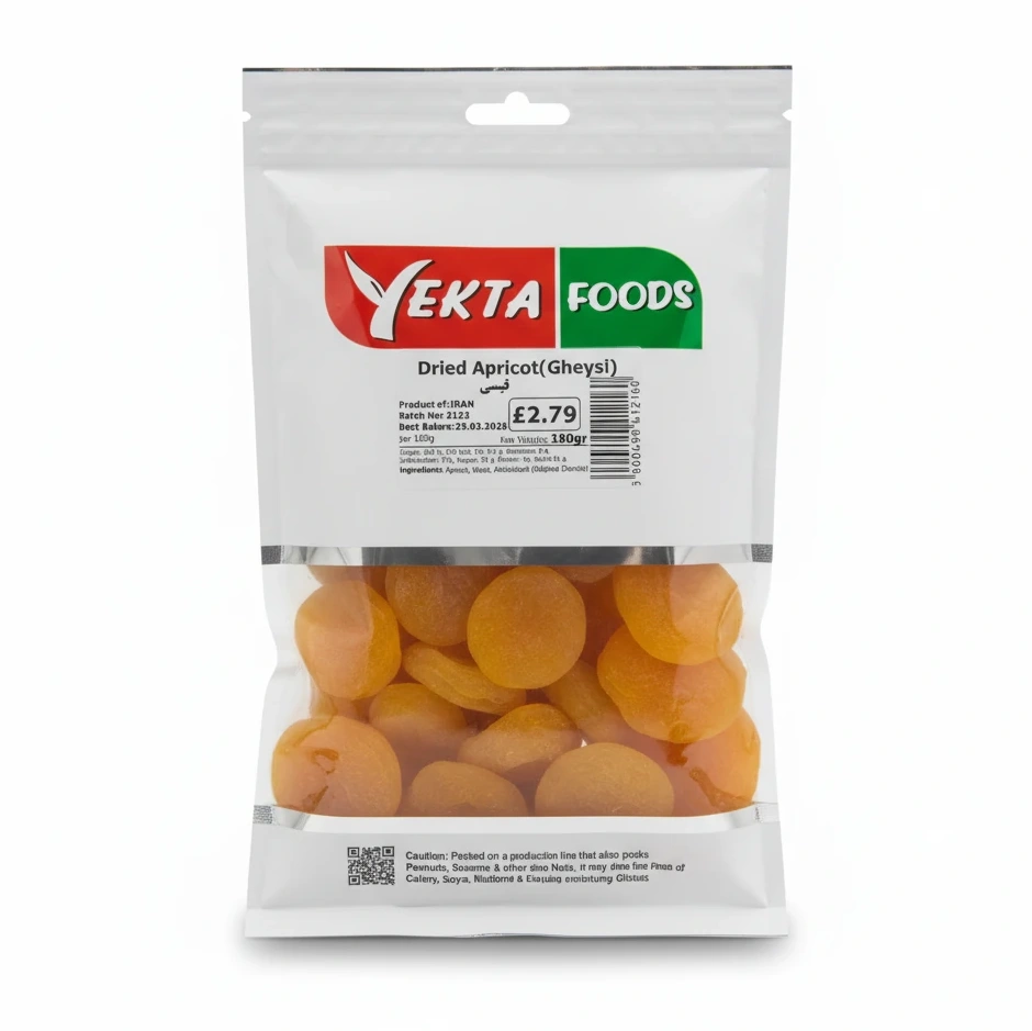 Enjoy the natural sweetness and rich flavour of Yekta Foods Dried Apricot Gheysi, sourced directly from Iran. These dried apricots are carefully prepared to retain their vibrant colour and chewy texture, making them a perfect snack or ingredient for your favourite dishes.
