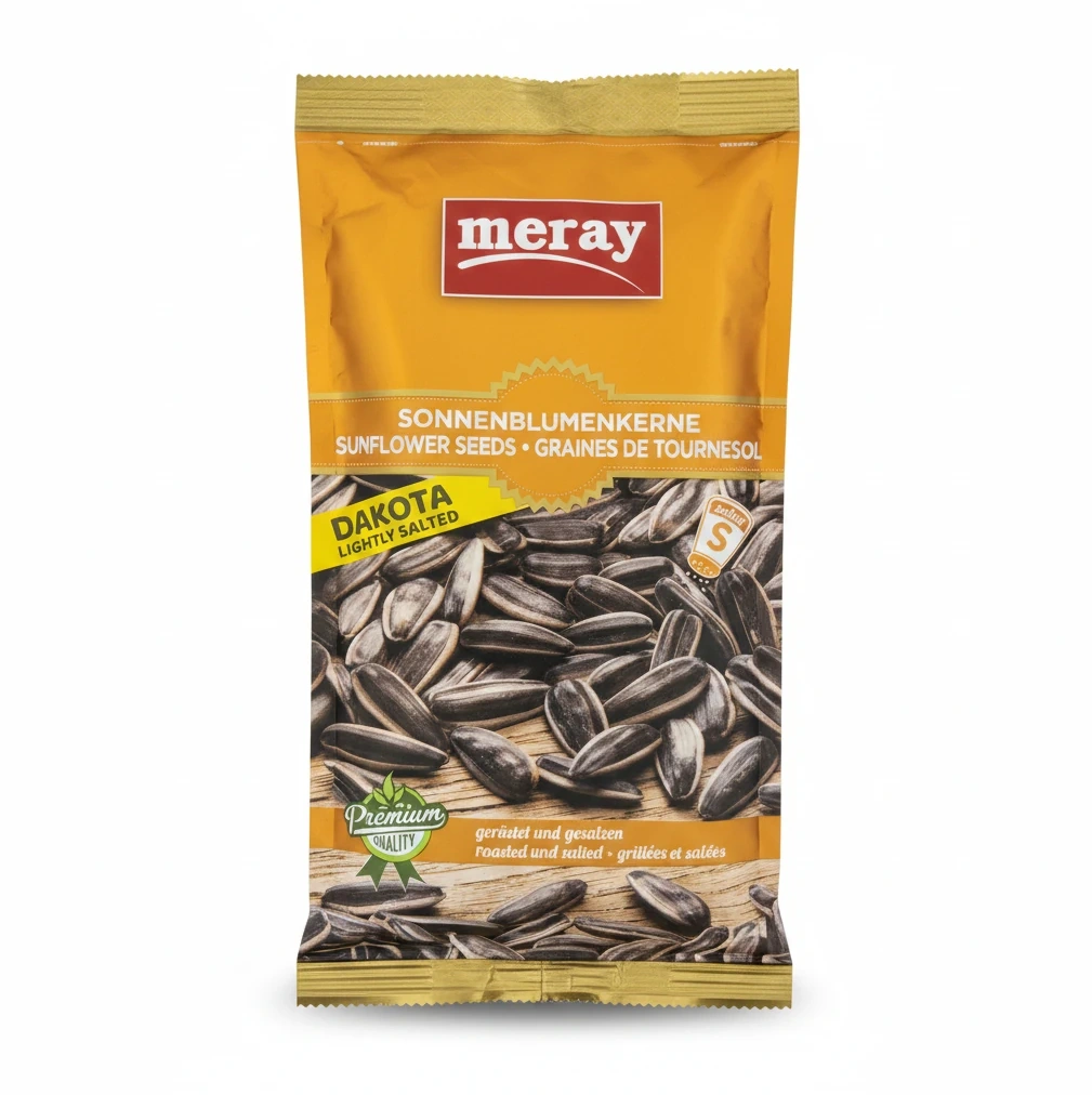 Enjoy the satisfying crunch and rich flavour of Meray Dakota Lightly Salted Sunflower Seeds. Roasted to perfection and lightly salted, these seeds are a premium quality snack that delights the senses.