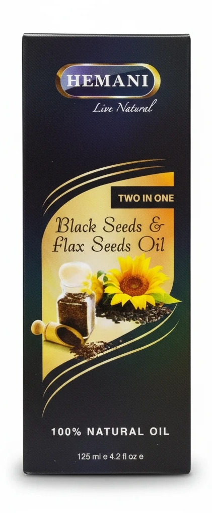 This unique 2-in-1 oil by Hemani combines the natural benefits of Black Seed Oil and Flax Seed Oil into one convenient bottle. Each 125ml contains 100% natural oil designed to support overall well-being.