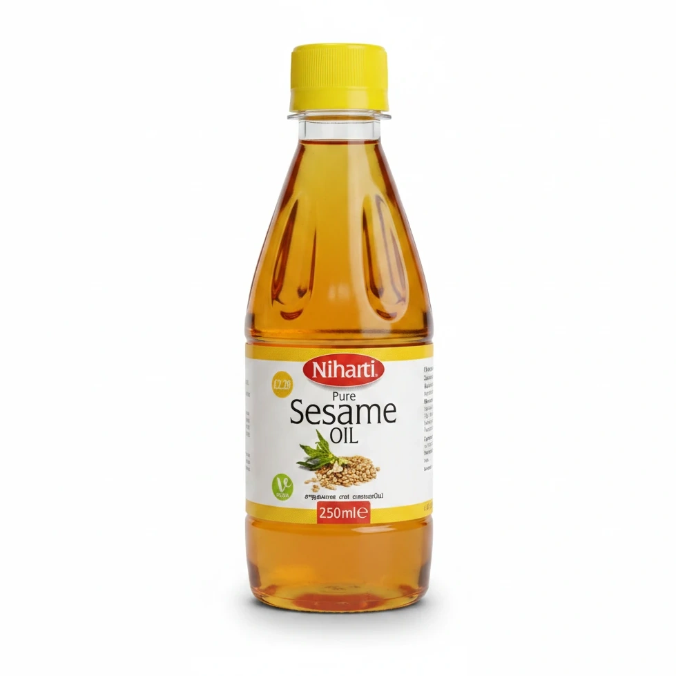 Experience the versatile benefits of Niharti Pure Sesame Oil, crafted from 100% quality sesame seeds. This golden-hued oil is perfect for frying, roasting, and drizzling over your favourite dishes, adding a subtle nutty flavour to elevate your cooking.