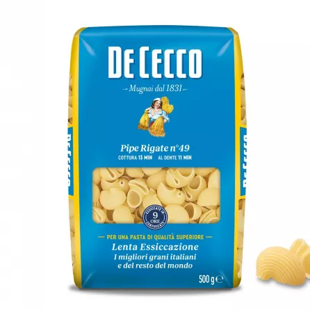 This pasta comes from central-southern Italy. Pipe Rigate is like snail-shaped pasta but with ridges on both ends. They're great for sauces that aren't too thick because they can trap the sauce well. They go especially well with meaty sauces like pork or beef ragù, sausage, or mushroom sauces. In the summer, they're perfect with light sauces made from fresh tomatoes and mozzarella, or for baked dishes.