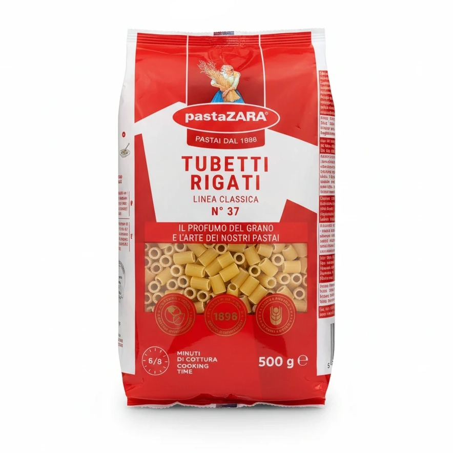 Bring the rich Italian tradition to your kitchen with PastaZARA Tubetti Rigati. Crafted using premium durum wheat semolina, this pasta is designed to hold sauces beautifully with its ridged, tubular shape.