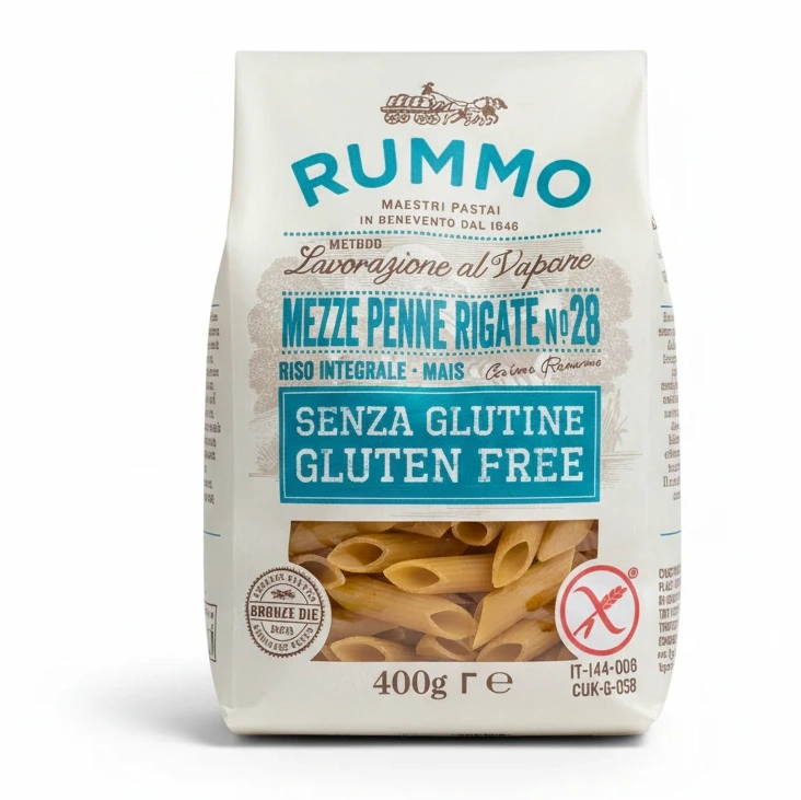 Made from a unique blend of brown rice, yellow and white corn, all strictly GMO-free, Rummo uses a traditional steam processing technique called Lavorazione al Vapore. This slow method produces a soft and balanced dough that is extruded through bronze dies, giving the pasta a wonderfully rough surface that helps sauces cling perfectly.