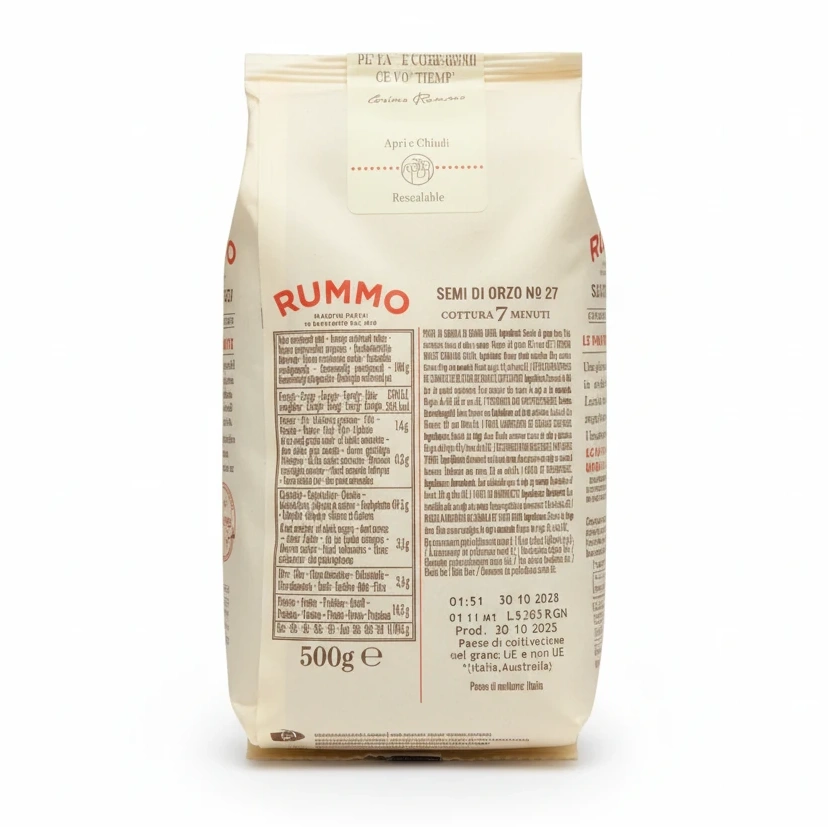 Enjoy the authentic taste of traditional Italian pasta with Rummo Semi Di Orzo No 27. Crafted since 1846 by skilled pasta makers, this pasta is made using the special Metodo Lenta Lavorazione, ensuring exceptional cooking resistance and a unique, satisfying texture.