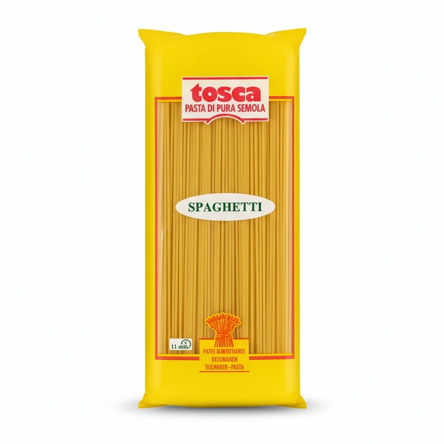 Enjoy authentic Italian-style spaghetti made from pure durum wheat semolina. This Tosca pasta offers a traditional texture and firm bite, perfect for your favourite sauces and meals.