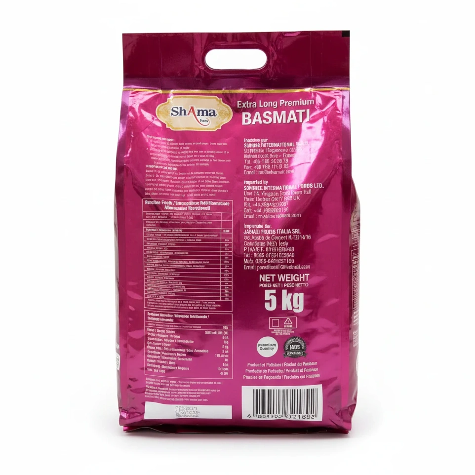 Enjoy the delicate aroma and fluffy texture of Shama's Extra Long Premium Basmati Rice. This 5 kg bag delivers high-quality basmati rice known for its slender grains and exceptional cooking results.