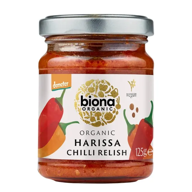 - A spicy, wonderfully aromatic paste, our Biona Organic Harissa Chilli Relish is just the thing to waken your taste buds.Â