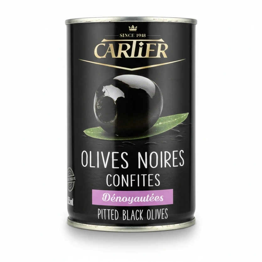 These Cartier Pitted Black Olives bring the rich, authentic taste of fine black olives to your kitchen. Perfect for adding a burst of flavour to salads, pizzas, pasta dishes or antipasti platters, these olives have been carefully pitted for effortless use.