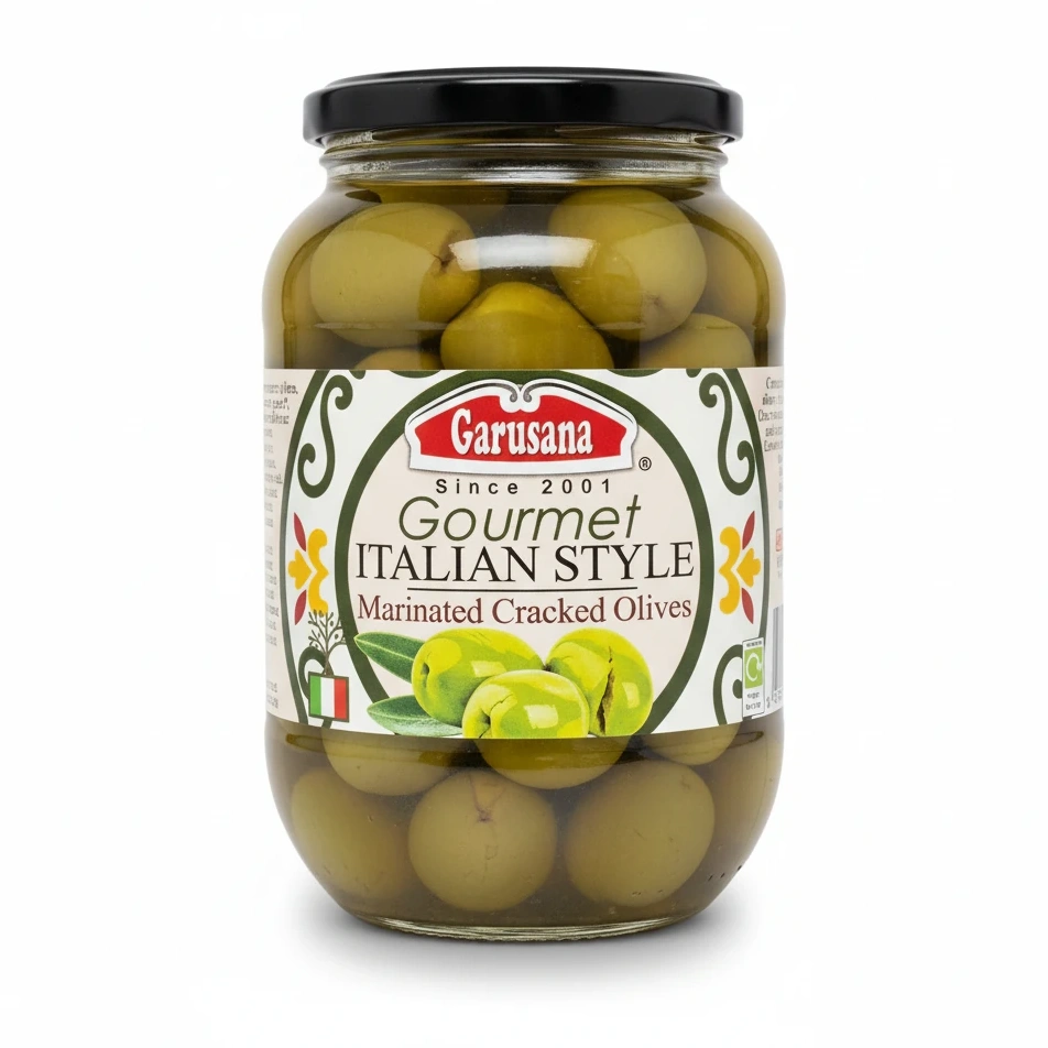 Brighten your meals with these Garusana Gourmet Italian Style Marinated Cracked Olives. Expertly prepared using cracked green olives, this rich and flavourful product brings a distinctive Italian touch to your dining table.