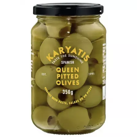 • Our Queen olives come pitted and ready to be used in various culinary applications, such as tossing into pasta, incorporating into salads, or slicing to top pizzas.