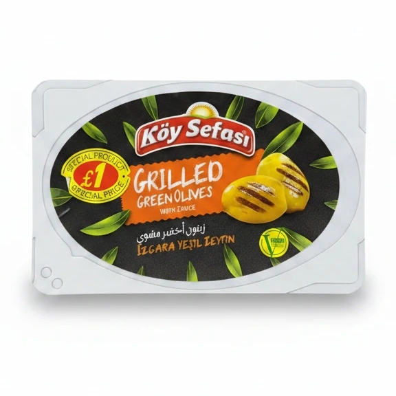 Enjoy the delightful taste of Köy Sefası Grilled Green Olives, perfectly charred to enhance their natural flavour. These olives come with a special sauce that complements the smoky, grilled notes, making them a tasty snack or a great accompaniment to your meals.