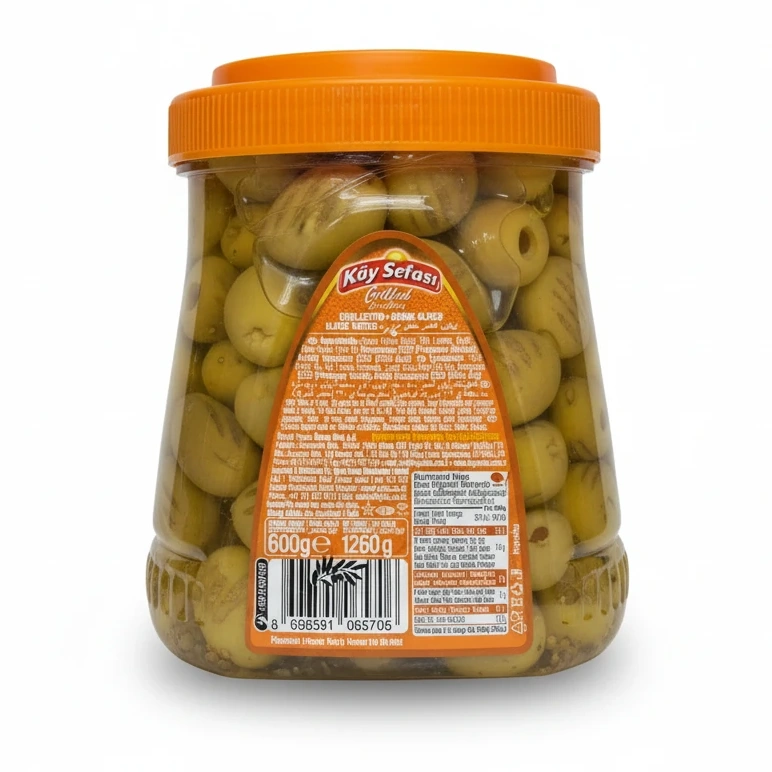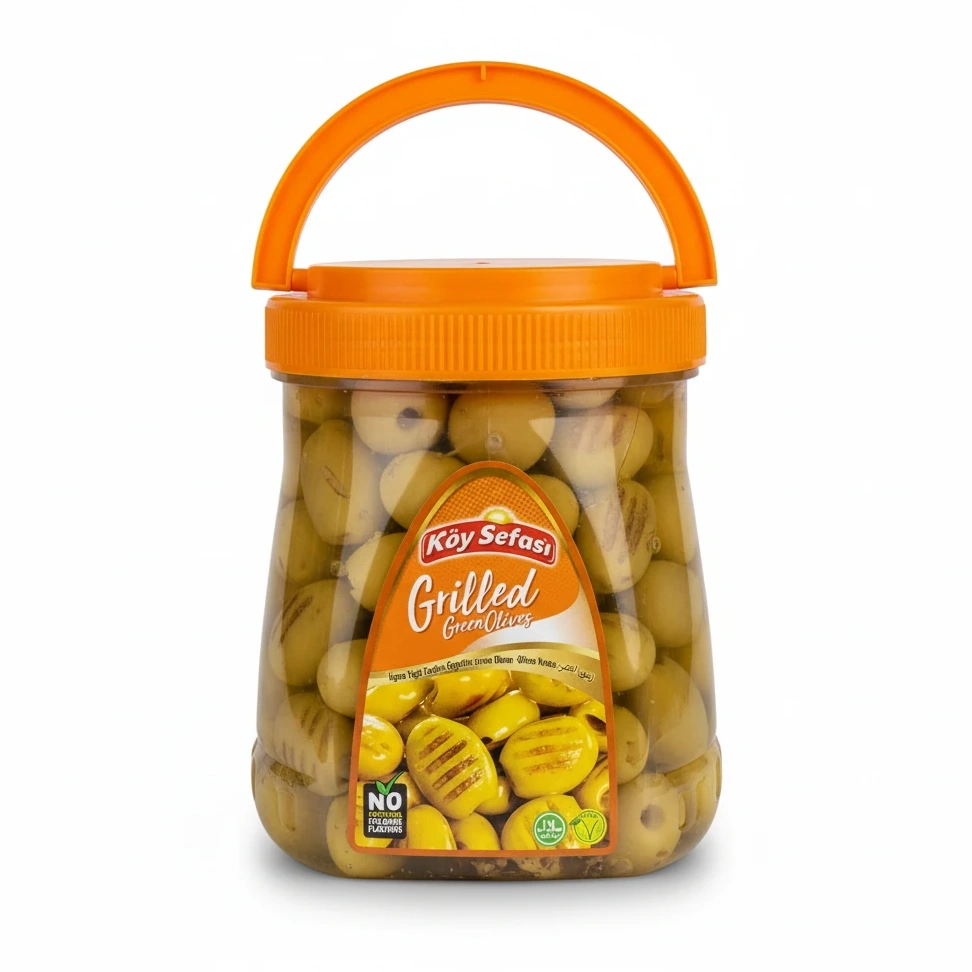 Enjoy the distinctive taste of Köy Sefasi grilled green olives, carefully prepared to bring a unique flavour to your table. These olives are naturally grilled, enhancing their rich, smoky notes without any artificial colours or flavours, making them a wholesome choice for your snacks or recipes.