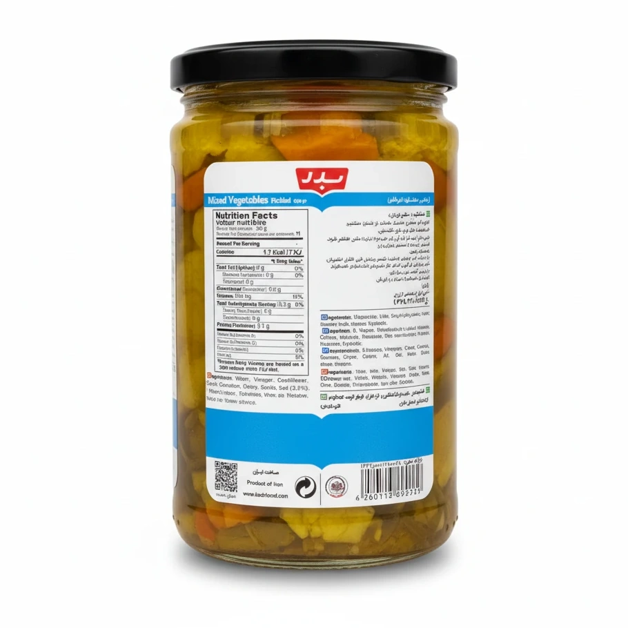 Add a delightful tangy crunch to your meals with Badr Mixed Pickled Vegetables. This jar contains a colourful blend including cauliflower, cucumber, carrot, celery, and pepper, all carefully pickled to maintain their crispness and vibrant flavour.