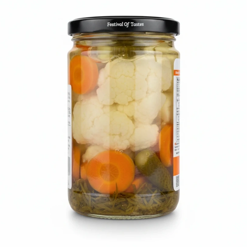 Water, Cauliflower, Carrot, Cucumber, Vinegar, Salt (3.5%), Celery, Herbs, Garlic, Pepper.