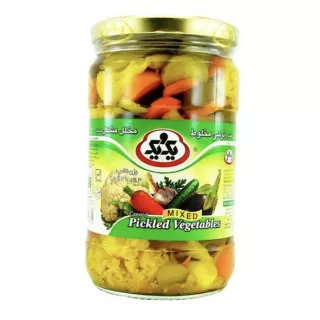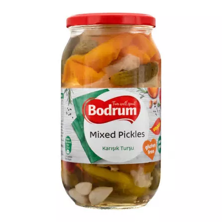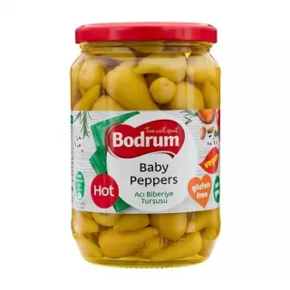 4. Close-up of spicy green olives mixed with red chilipeppers lose outside container
