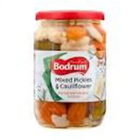 4. Close-up of spicy green olives mixed with red chilipeppers lose outside container