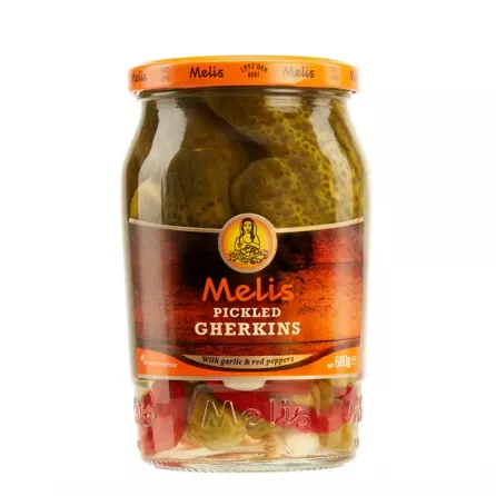 Melis Pickled Gherkins With Garlic & Red Peppers