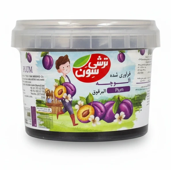 Made in Iran, this plum pickle is produced under strict quality standards, including ISO certifications, ensuring high quality and safety for consumers. It requires storage in cool and dry places to maintain freshness.